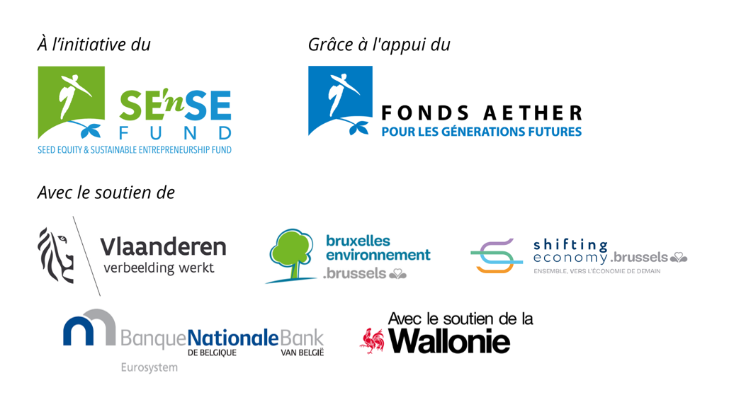 Dans le cadre de son programme de soutien à l’entrepreneuriat soutenable, la Fondation bénéficie du soutien du Gouvernement flamand et de la Région de Bruxelles capitale (Bruxelles-Environnement), dans le cadre de sa stratégie Shifting Economy.